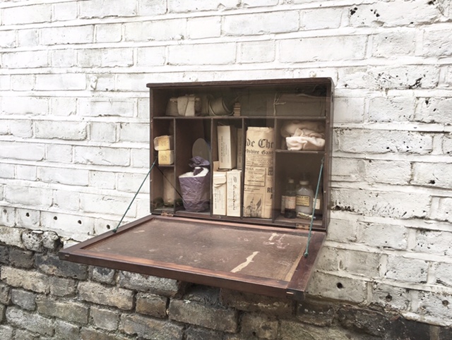 We glazzed this 1940’s first aid kit to keep its contents safe. It now hangs in a doctors surgery.